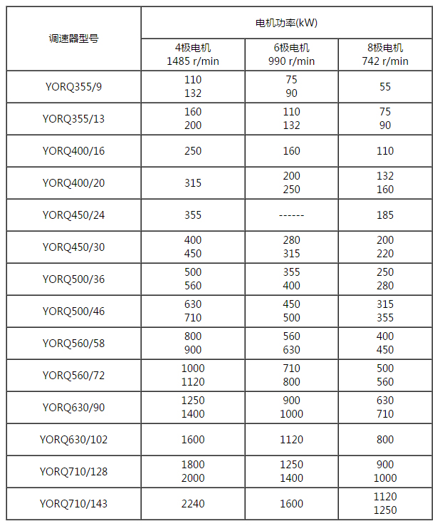 表2 YORQ短系列永磁耦合調速器與匹配電動機功率對照表